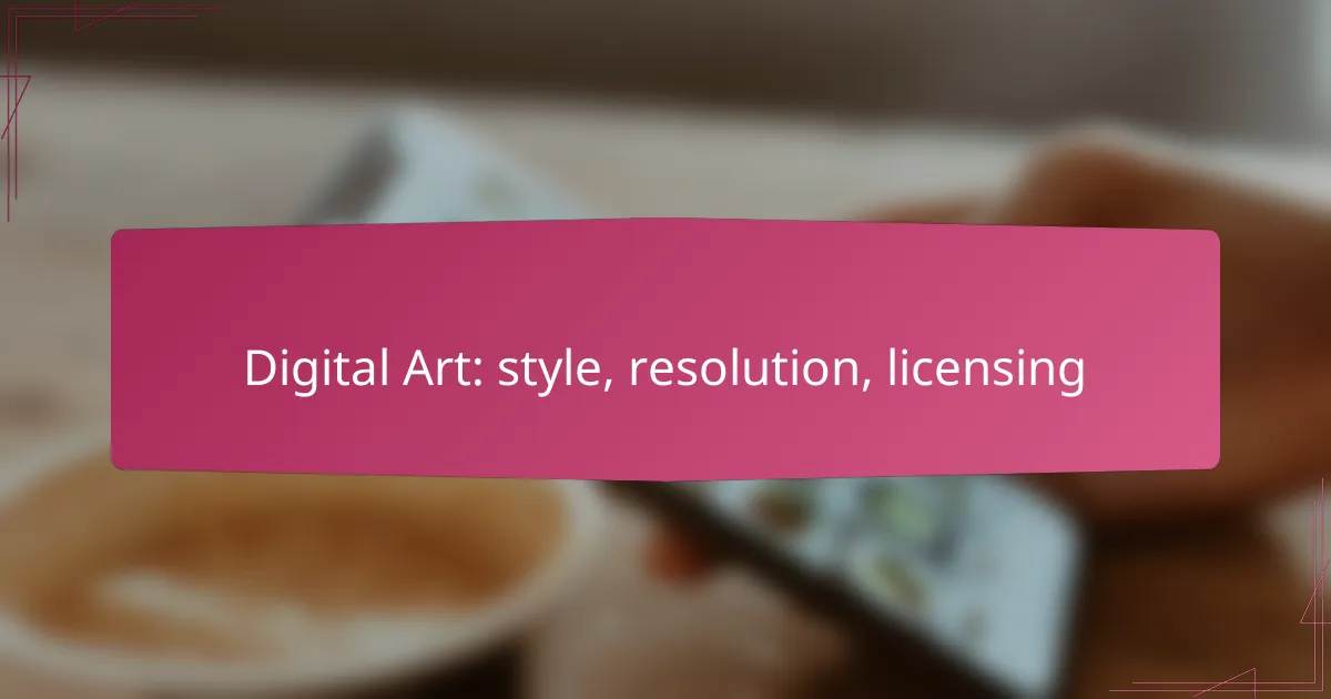 Digital art encompasses a diverse range of styles, each capable of conveying unique messages and emotions tailored to specific projects and audiences. The resolution of digital artwork plays a crucial role in its application, with 72 DPI being suitable for web use and 300 DPI recommended for print to maintain quality. Additionally, understanding licensing options is vital for both artists and users, ensuring fair compensation and appropriate usage of the artwork.