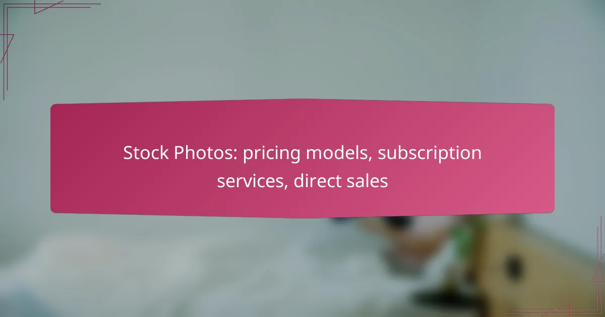 Stock photo pricing models include pay-per-download, subscription-based, and direct sales, each catering to different user needs and budgets. Subscription services provide access to extensive image libraries for a recurring fee, offering flexibility and cost efficiency. In contrast, direct sales empower photographers to retain more earnings and control over their pricing by selling directly to clients.